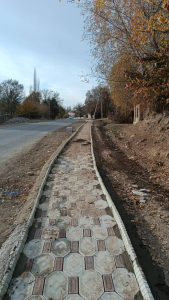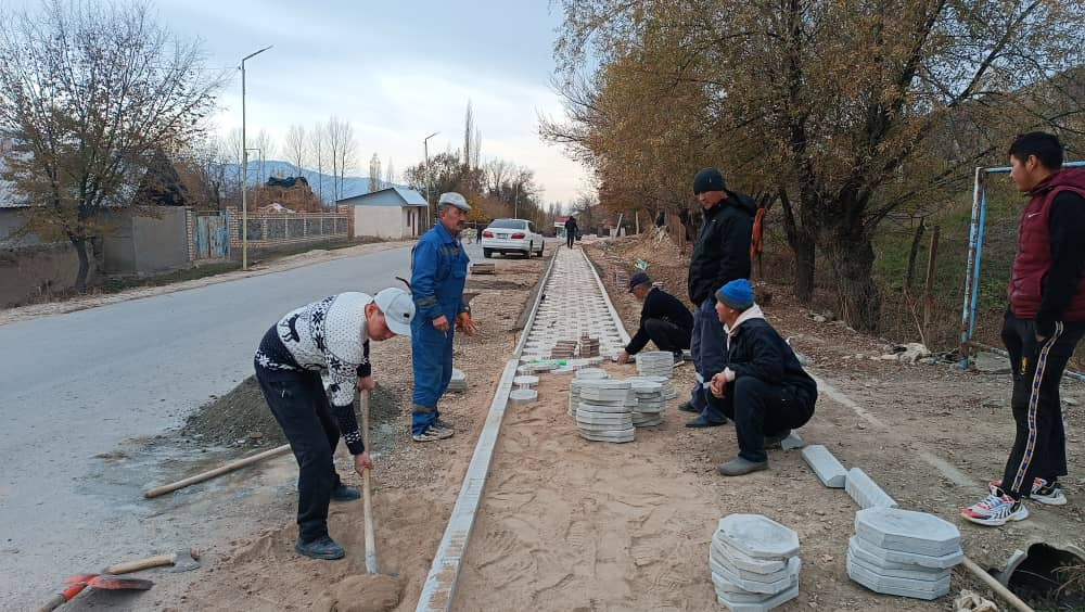 Үч-Терек айыл өкмөтүнө караштуу Кызыл-Ураан айылынын борбордук А.Калиев көчөсүнүн 1500 чакырым аралыгына жөө адамдар өтүүчү тротуар курулууда.